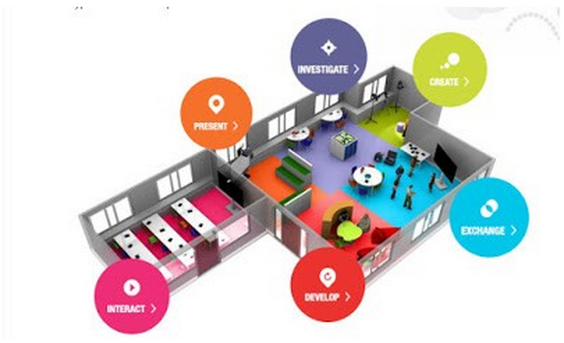 У кожній зоні лабораторії акцентуються специфічні аспекти навчання та викладання: організація фізичного простору, ресурси, зміна ролей учнів та вчителя та підтримка різних стилів навчання.