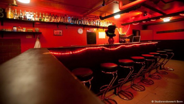 Німецький гуртожиток не обмежується кімнатою. Студенти цінують і його інфраструктуру. Тут є приміщення з пральними машинами, велосипедні стоянки, а іноді – тренажерні зали та навіть гаражі для автомобілів. Але головне – є такі приміщення, де можна ввечері зібратися, наприклад, на гучну вечірку, як цей червоний бар у підвалі 17-поверхового гуртожитку на півночі Бонна.