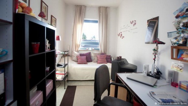 Найчастіше в Німеччині знайти резиденцію студентам допомагають студентські спілки. Так, в порівнянні з приватним житлом, гуртожиток не вдарить по кишені. Наприклад, за ці 11 квадратних метрів у гуртожитку Бонна студент платить 217 євро на місяць.