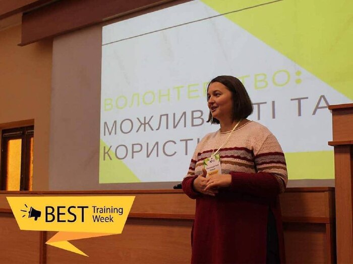 Олександра Лиса під час тренінгу з волонтерства