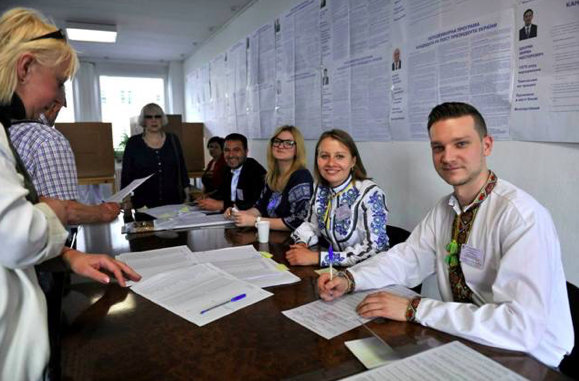 Виборча дільниця в Українському консульстві у Мюнхені: студенти УВУ серед працівників комісії. Фото з сайту УВУ