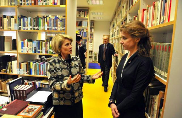 Ректор УВУ професор Марія Пришляк та Марина Порошенко у бібліотеці УВУ. Фото з сайту УВУ.