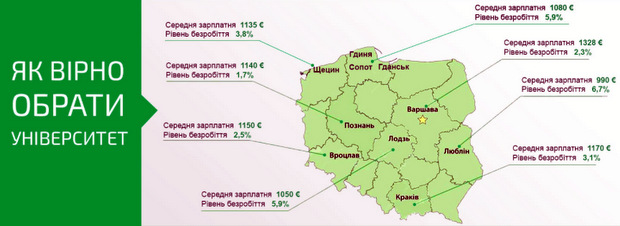 За даними освітньої агенції «ОсвітаПоль», що спеціалізується на сприянні українським вступникам у навчанні в Польщі, після закінчення вишу більша частина випускників так і залишається жити в тому регіоні, де навчались, тому вибір міста є дуже важливим для подальшої кар’єри молодого фахівця. Тож чи варто віддавати перевагу навчальним закладам, що знаходяться в регіонах, де професійний розвиток є обмеженим?