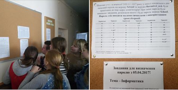 Причина в тому, що у школі було розпочато щоденну зміну паролю шкільної мережі Wi-Fi. Тепер кожного дня на дошці оголошень буде задано тематичне запитання, відповідь до якого і буде паролем на даний день!