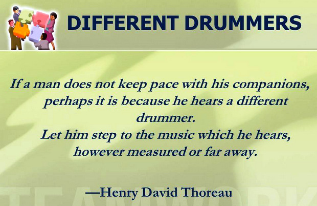 «Якщо людина не йде в ногу зі своїми супутниками, — писав американський письменник Генрі Торо, — можливо, це від того, що їй чутно іншого барабанщика. Так нехай же карбує крок під ту музику, яка чується їй, хай і віддалену».