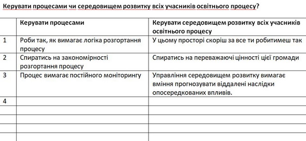 У жовтні-листопаді минулого року для слухачів школи освітніх інновацій та управління, яку організовував Центр інноваційної освіти «Про.Світ», пропонував заповнити такі таблички (див фото) з тим, щоб вони змогли відчути різницю між цими трьома способами управління.