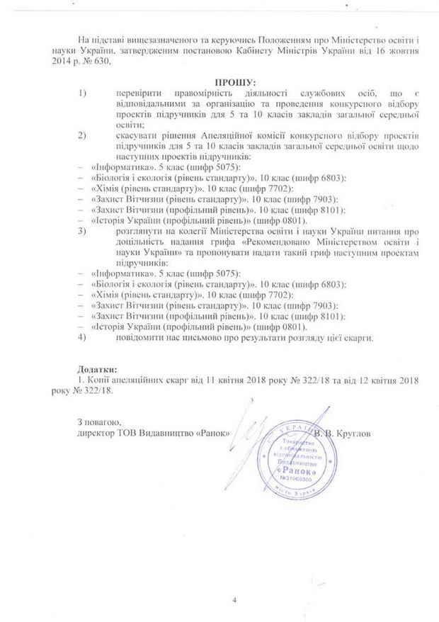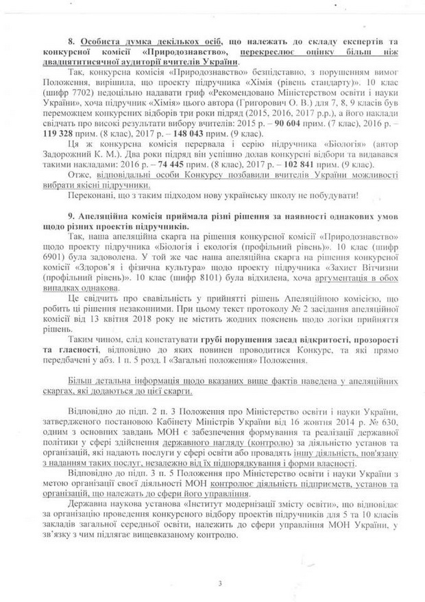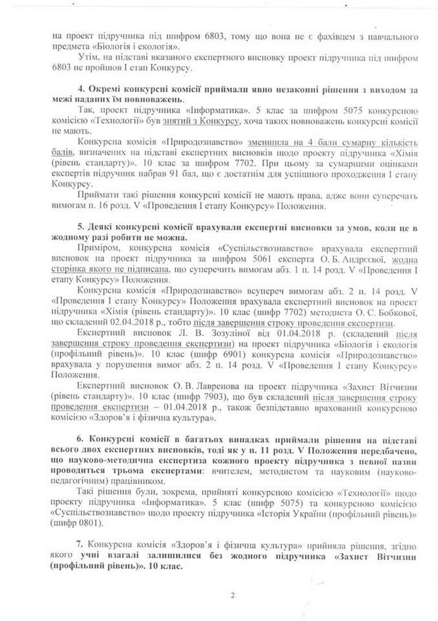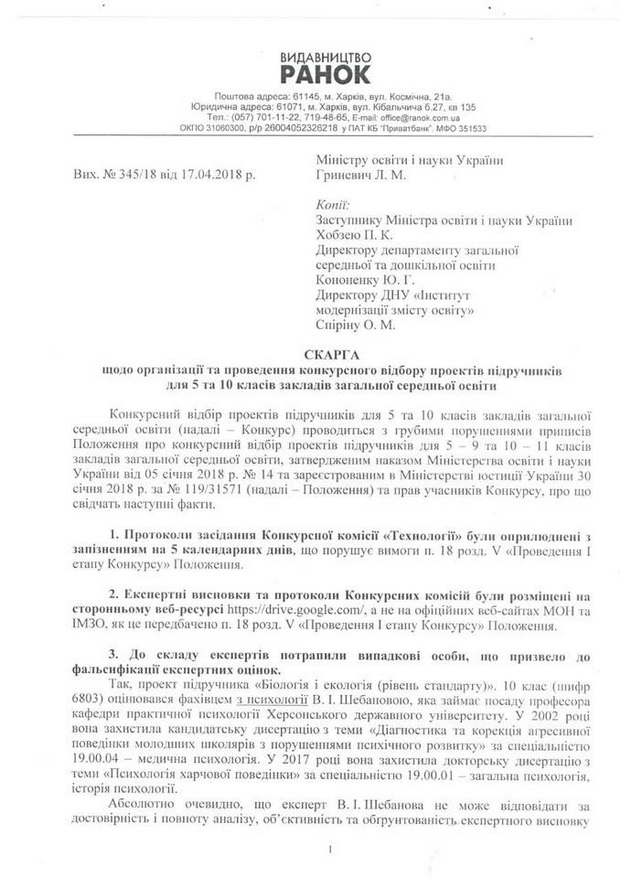 Додаю нашу скаргу на ім’я міністра освіти та науки пані Лілії Гриневич. Усі факти документально зафіксовані.