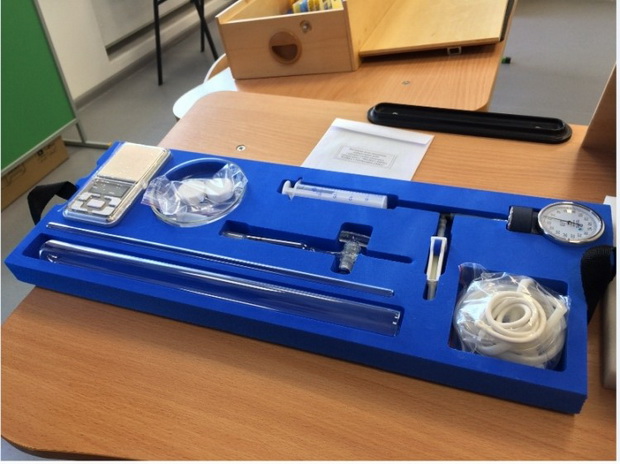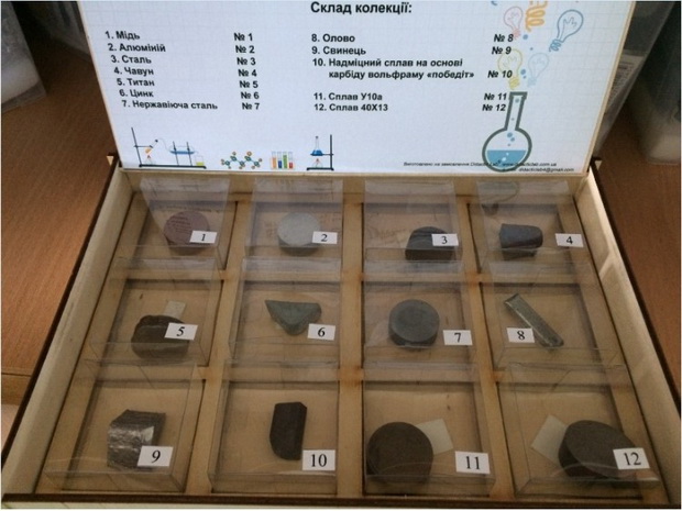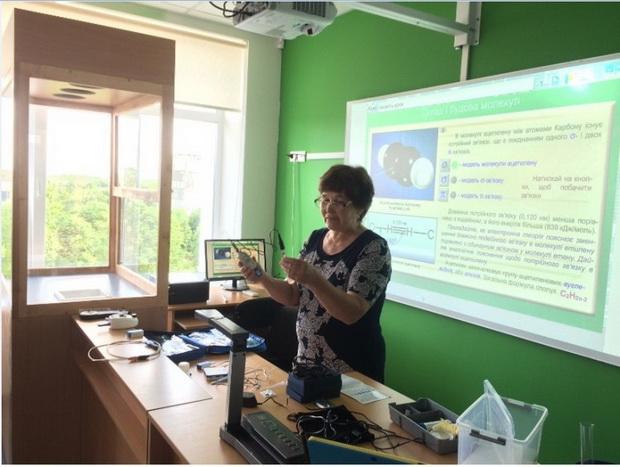 Хімія: витяжна шафа, набір скляного посуду, pH-метри, наочні матеріали: кристалічні гратки, зразки металів, скла, пластмас. Є навіть мобільний хімічний набір, з яким можна виїздити до місця забору зразків.