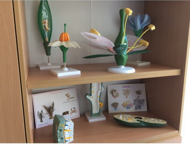 У кабінеті біології - набори звичайних оптичних мікроскопів, наочні макети з анатомії чи ботаніки плюс є навіть USB-мікроскоп, що дозволяє виводити зображення зі столу вчителя через проектор на інтерактивну дошку.