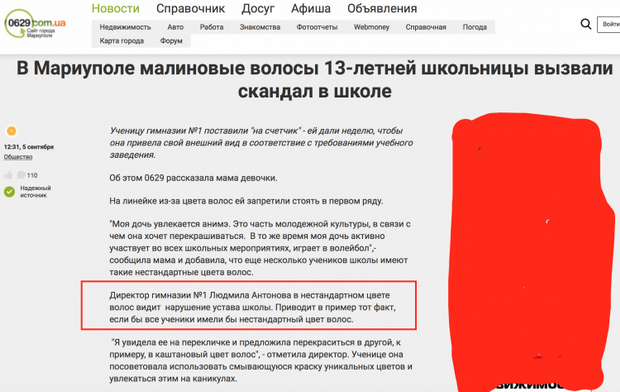 Казалось бы, в 21 веке не ахти какое событие. Но нет. Глубоко засевшее чувство «все должны быть одинаково серые» подвело директора гимназии. И девчушке дали неделю на «перекраситься в нормальный цвет, чтобы соответствовать дресс-коду школы».