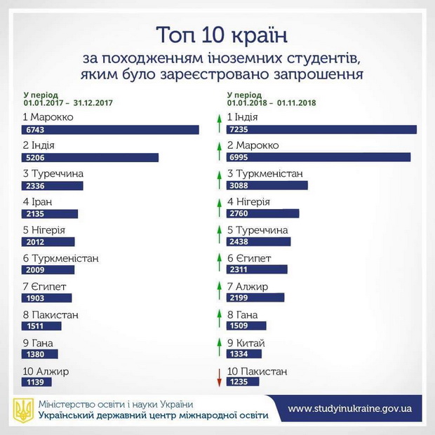 Станом на 01.01.2018 за статистичними даними в Україні навчається 66310 іноземних студентів. Тобто, завдяки #studyinukraine в українську економіку інвестується 331 мільйон 550 тисяч доларів, або понад 9,2 мільярдів гривень!