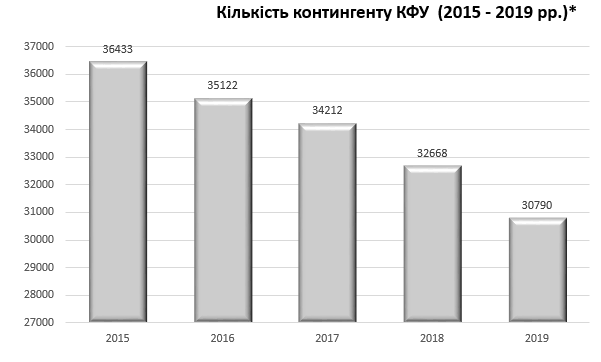 І з кожним роком кількість контингенту КФУ скорочується. Цей рік теж не став виключенням – загальна кількість студентів та студенток, які навчалися у КФУ, зменшилася на 6% (на 1878 осіб)