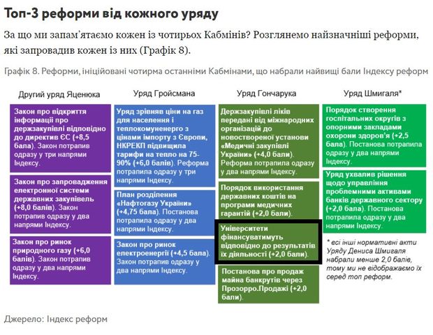 Фінансування закладів вищої освіти на основі результатів їхньої діяльності, яке ми запустили з січня 2020 року, потрапило до ТОП-3 реформ уряду Олексія Гончарука за версією Індексу реформ від VoxUkraine.