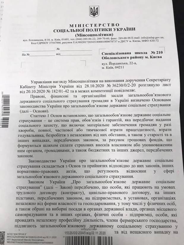 Спеціалізована школа № 210 написала офіційного листа до прем’єр-міністра України Дениса Шмигаля.