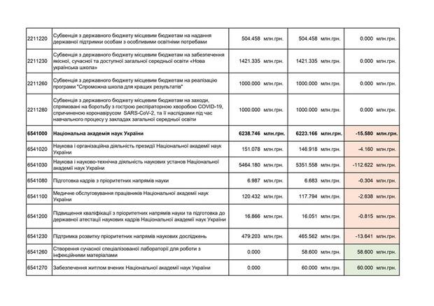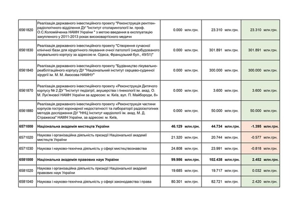 - Академії наук (мінус 200 мільйонів);