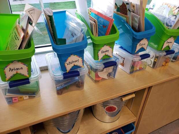 Кімберлі ж зошити організувала «купками», як ми звикли. Роздає сама, а діти складають у відповідний підписаний контейнер, коли завершують роботу.