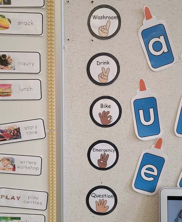 Розклад уроків. Щоб уникнути безлічі запитань: «У нас сьогодні буде фізкультура? Коли ми будем їсти? Коли вже малювання? Коли ми підемо додому?» – кожен день починається з того, що вчитель розказує про роботу на день і прикріпляє відповідні зображення чи надписи на дошці, при цьому уточняючи, що цікавого робитимуть, чи місце, де це буде відбуватися.