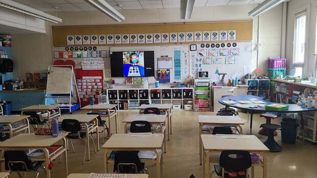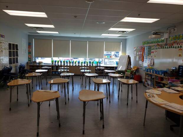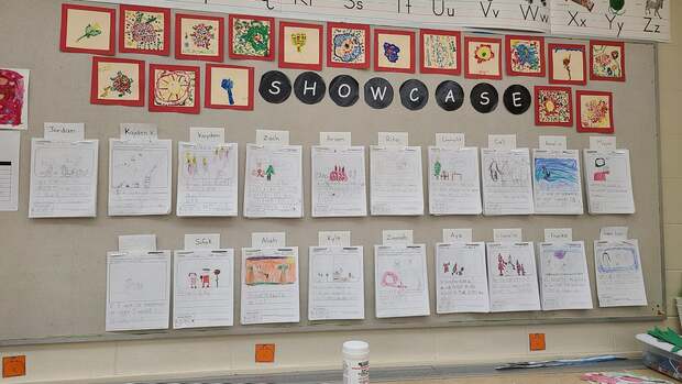 - У канадських вчителів є неписане правило: краще «недоприкрасити», аніж наліпити забагато, хоча по фотографіях видно, що це дуже суб'єктивно. Декорацій на стінах у вигляді українських стендів немає взагалі, проте є декілька магнітних дошок, а також дерев'яних, обтягнутих мішковиною. У класі висить абетка, цифри, все інше – це дитячі роботи, малюнки, правила для учнів, створені самими учнями, слова чи правила, які вивчають, і які вчителька періодично змінює.