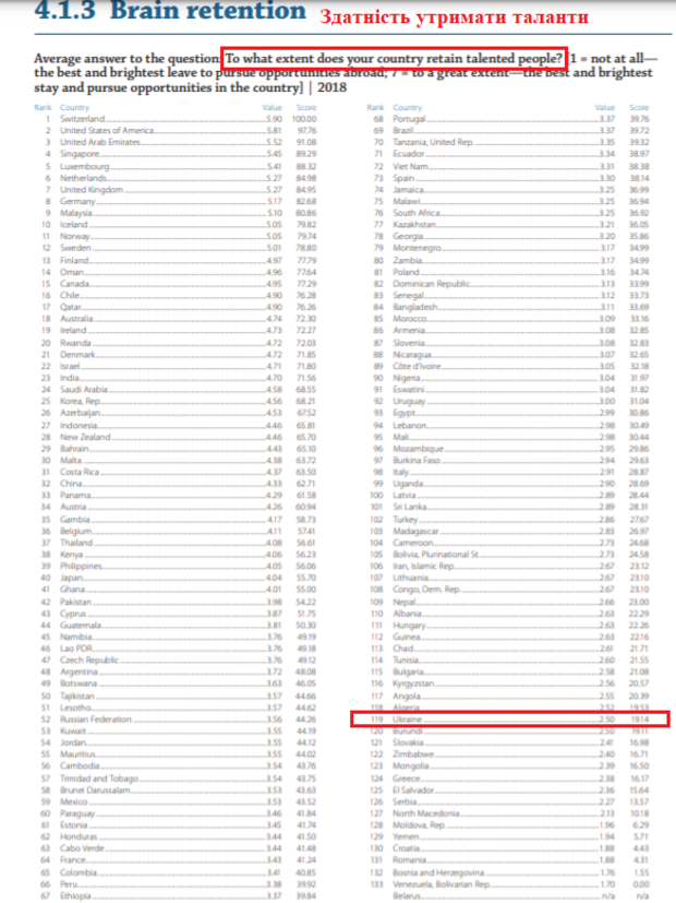 119 з 134 країн світу – саме таке місце посідає Україна у світі за здатністю утримувати таланти.