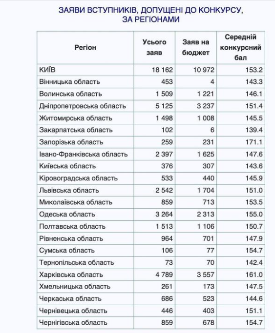 Дивлюсь витяг з ЄДЕБО про кількість заяв вступників, допущених до конкурсу за регіонами. І не бачу Херсонської області…