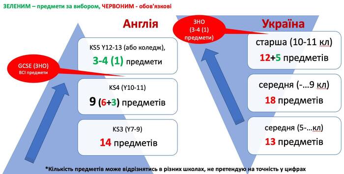 Отже, наступні два роки (10-й та 11-й) учні вивчають 6 обов’язкових і 3 обраних предмети. По закінченню 11 року навчання діти складають GCSE (аналог ЗНО) з усіх 9 предметів. Таким чином, у них не виникають питання, навіщо вчити всі предмети.
