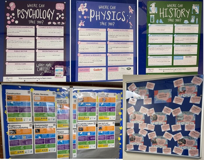 2. Інформаційні постери. На стінах практично у всіх коридорах школи висять десятки стендів з інформацією про різні професії, приблизні заробітні плати, кар’єрні шляхи, ринок праці. Додаю фото. Очевидно, що школа сама не розробляє такі аналітичні постери, хтось робить це для шкіл централізовано.