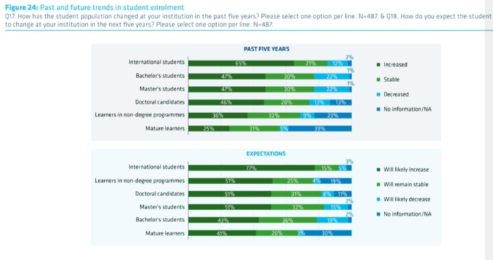 Тобто університети Європи очікують, що у наступні 5 років контингент студентів буде мати більш міжнародні риси та одночасно «подорослішає», а неформальні освітні програми набудуть більшого поширення в діяльності університетів. Як кажуть, «не бакалавратом та магістратурою виключно мають жити сучасні університети».