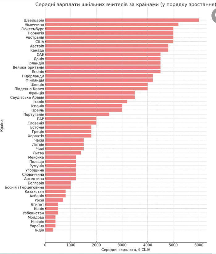 Реформи в шкільній освіті успішних країн починалися з того, що у вчителів були зарплати вищі за середню по країні. Це робило роботу в школі економічно привабливою. Це створювало великий попит на педагогічні спеціальності в університетах та дуже жорсткий відбір.