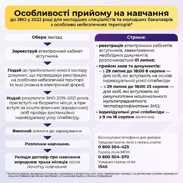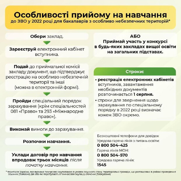 Міністерство з питань реінтеграції тимчасово окупованих територій надало вступникам із особливо небезпечних територій детальні роз’яснення щодо вступу до закладів вищої освіти за спеціальною процедурою.