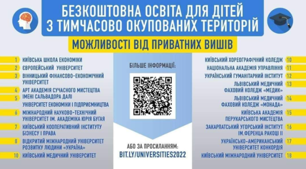 Вісімнадцять українських приватних вишів запрошують абітурієнтів з тимчасово окупованих територій на безкоштовне навчання.