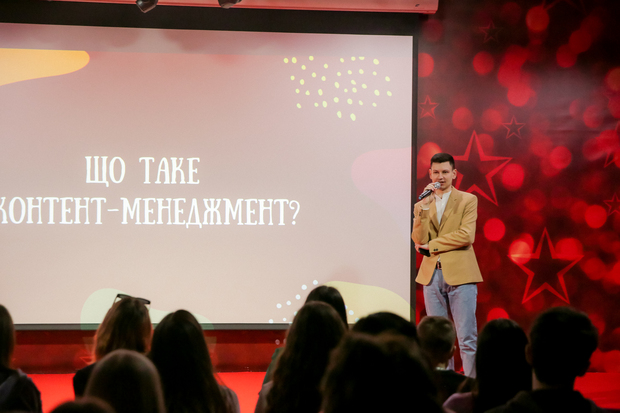 Випускник і викладач факультету PR, журналістики та кібербезпеки Ярослав Яцевський виступив перед учасниками заходу із майстер-класом «Контент-менеджмент». Фахівець поділився корисними лайфхаками й порадами відносно створення контенту та необхідними застосунками для контент-менеджерів. Також майбутні медійники долучились до інтерактивної гри і разом створили публікацію для соціальних мереж.