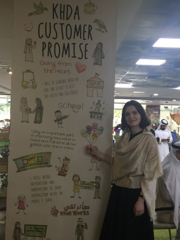 Ми прямуємо до meeting room, де на нас чекає «Менеджер з ініціатив по благополуччю, Агент по щастю» (офіційна назва позиції — Wellbeing Innitiatives Manager, Happiness Agent). Її роль – забезпечення шкіл Дубаю методиками і практиками підвищення добробуту і щастя.