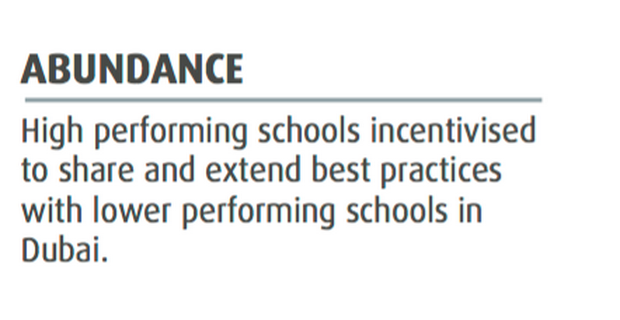 Співробітниця KHDA розповідає, що вони завжди вживають позитивний підхід і намагаються звертати увагу на кращі сторони школи. Ще сім років тому школи працювали в конкурентній парадигмі, для них було незвично відкривати свої двері гостям і ділитися своїми напрацюваннями з іншими школами. Сьогодні, оскільки школи генерують великі прибутки своїм власникам, конкуренція між ними ще більша, проте вони відкриті і раді ділитися і підтримувати інші школи.