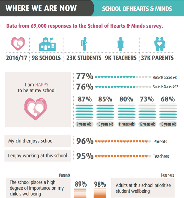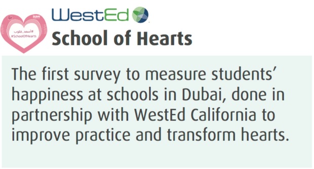 У партнерстві з компанією WestEd California було проведено перше дослідження психологічного клімату в школах Дубаї – зокрема, наскільки діти відчувають себе щасливими «School of Hearts and Minds Survey»). У 2016/2017 роках було опитано 23 000 учнів, 9 000 вчителів і 37 000 батьків.