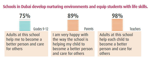 У школах Дубая учні встановлюють зв’язки, відкривають і будують позитивні стосунки, культивують наполегливість і психологічну пружність, заохочують позитивну поведінку між учнями.
