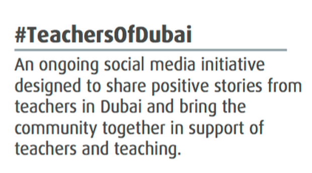 Соціальна медійна кaмпанія TeachersofDubai спрямована на поширення позитивних історій від вчителів Дубая і допомагає об’єднати зусилля громади на підтримку вчителів і вчителювання.