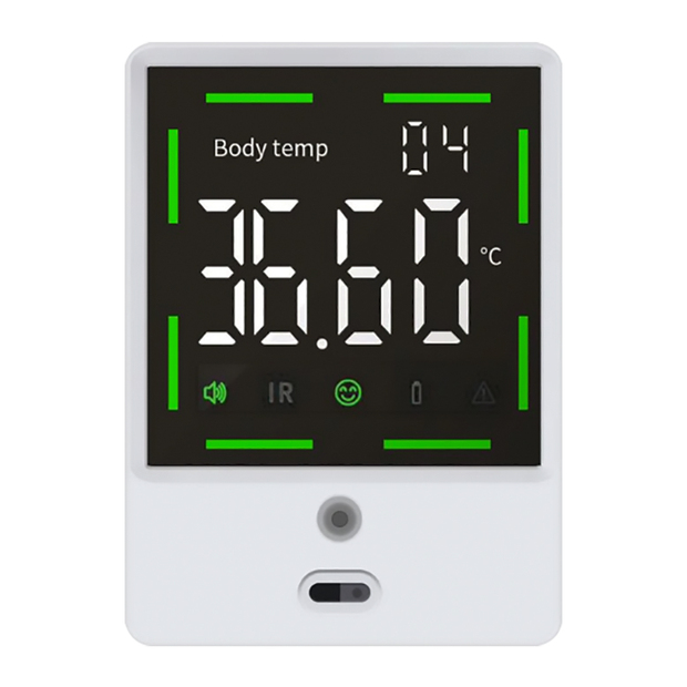 Безконтактний інфрачервоний термометр. Прилад, який вимірює температуру тіла на певній відстані. Для вчителя набагато зручніше, коли термометр закріплений при вході, і діти просто проходять повз із затримкою в декілька секунд. Термометр повинен видавати звукове сповіщення про закінчення виміру і отриманий результат. Коли будете обирати термометр, зверніть увагу на звукове сповіщення, коли отриманий показник більше граничної норми.