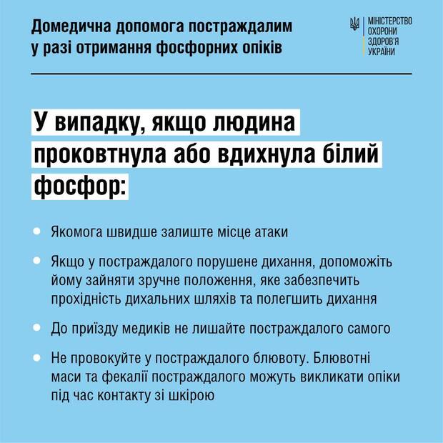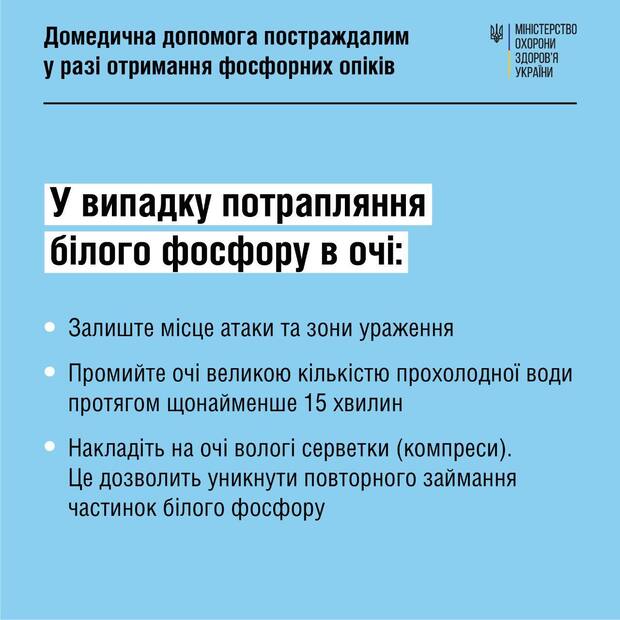 У МОЗ звернули увагу, що содові розчини та загалом харчова сода не використовуються у наданні допомоги постраждалим від білого фосфору.