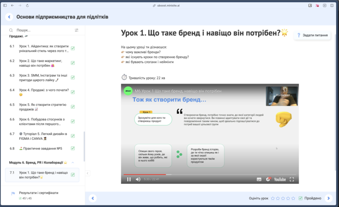 Програма охоплює ключові аспекти сучасного підприємництва та розвиває гнучкі навички, які потрібні молоді на старті кар'єри.