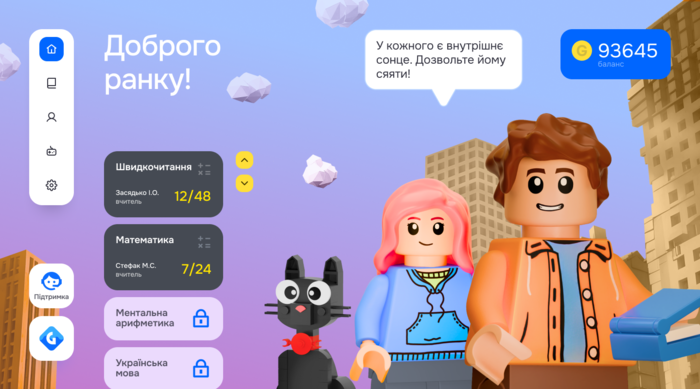 Серцем Gelios стала авторська навчальна платформа: з особистим кабінетом, сертифікатами, аналітикою прогресу та гейміфікацією. За кожне досягнення – монетки, рівні та рейтинги. Діти змагаються, виконують завдання не тому що «треба», а тому що їм цікаво.