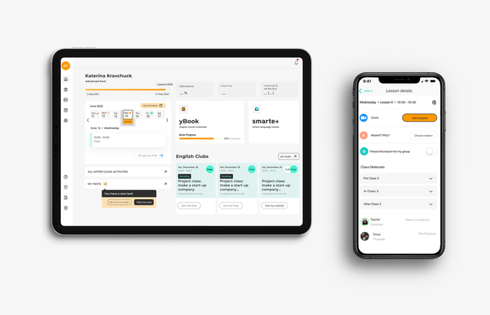 Перейдемо до інструменту школи Yappi Corporate – yCloud. Це дещо більше, ніж LMS. Це екосистема, де HR-менеджери можуть відстежувати прогрес співробітників, планувати заняття та отримувати глибоку аналітику за результатами. Працівники натомість отримують зручний особистий кабінет із доступом до занять, матеріалів і тренажерів.