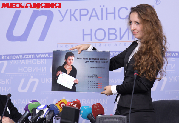 Дівчата поставили такі запитання президенту: "Коли буде доступне житло для молодих сімей?", "Що робити з президентом, який не виконує своїх обов'язків?", "Коли ВНЗ почнуть давати практичні знання?", "Коли чиновники почнуть нести відповідальність за хабарі?", "Смерть Ігоря Інділо: службова халатність?", "Де інфраструктура до Євро-2012?", "Як забезпечити чесний вступ до вузів?", "Чому Україна впала в рейтингу свободи преси на 131 місце?", "Хто вбив Георгія Гонгадзе?", "Скільки ще ми будемо знущатися над Конституцією?", "Чи залишиться українська мова єдиною державною?", "Журналістика - не проституція. Правда?".