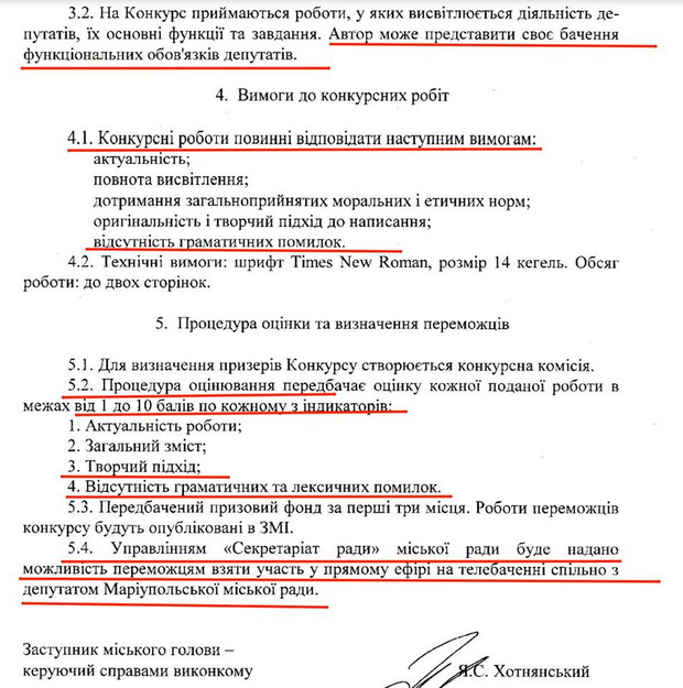 Конкурс проводитиметься за ініціативи секретаря Маріупольської міської ради Степана Махсми.
