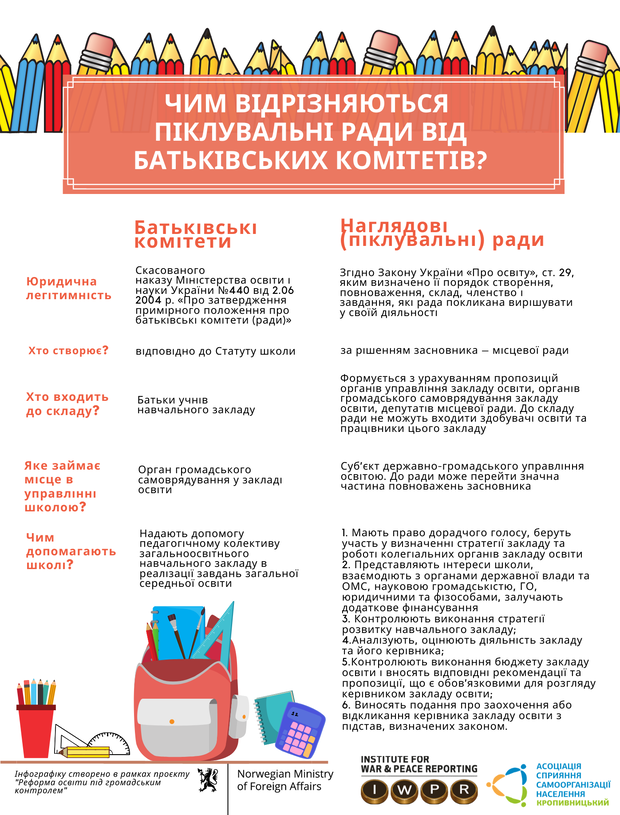З першого погляду може здатися, що від зміни назви «батьківський комітет» або «піклувальна (наглядова) рада» нічого не змінилося. Насправді ж законодавцем визначено, що піклувальні ради мають набагато більше можливостей у громадсько-державному управлінні школою. Вони теж можуть залучати фінансування як від батьків, так і від зовнішніх джерел, наприклад, благодійників або міжнародних донорів. Але основна їхня функція – формування стратегії розвитку школи, контроль за витрачанням фінансів та оцінка діяльності керівника. Піклувальна рада створюється за рішенням засновника школи – місцевими радами. Отже, без допомоги депутатів місцевих рад освіті ніяк не обійтися.