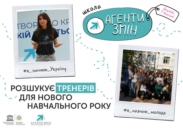Довідково: школа «Агенти змін» – це всеукраїнський освітній проєкт для підлітків, який заохочує до саморозвитку, відповідального громадянства, проактивної участі та розвитку громад для активних учнів 8-х – 10-х класів з усієї України, які мають бажання засновувати та розвивати ініціативи, спрямовані на вдосконалення життя своєї громади у реаліях українського сьогодення. Навчання здійснюється за тренінговими інтерактивними методиками, які включають комплексний погляд на розвиток особистості та індивідуальний підхід до кожного.