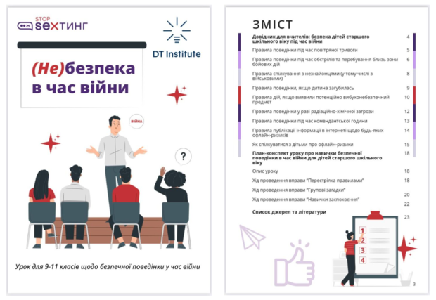 Освітній проєкт рекомендує батькам та вчителям провести для дітей спеціальний урок, розроблений фахівцями #stop_sexтинг «(Не)безпека в час війни. Уроки для учнів 1-11 класів щодо безпечної поведінки під час війни», створені за підтримки DT Institute.