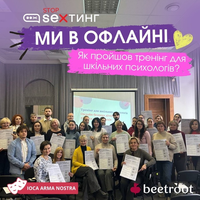 З цією метою громадська організація #stop_sexтинг за підтримки Beetroot Tech Relief Fund провели тренінг для шкільних психологів. Учасники мали можливість отримати нові знання та практичні інструменти для роботи з учнями, які стикаються з онлайн-ризиками, пов'язаними із сексуальним насильством.