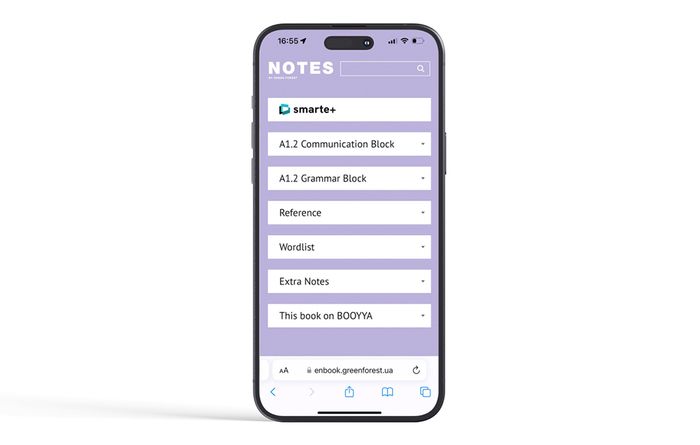 Notes by Green Forest – повністю інтерактивний підручник англійської. Його унікальність полягає в актуальності тем, адаптованих саме під українського споживача, а також у тісній інтеграції з цифровою навчальною платформою Smarte+. Завдяки цьому контент підручника може оновлюватися щодня, а навчання стає сучасним і динамічним.