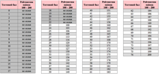 Усі учасники, які подолали визначений експертами бар’єр отримали рейтингову оцінку, що визначена за шкалою від 100 до 200 балів. Отриманий результат тестування учасники ЗНО зможуть використовувати під час вступної кампанії до вищих навчальних закладів.