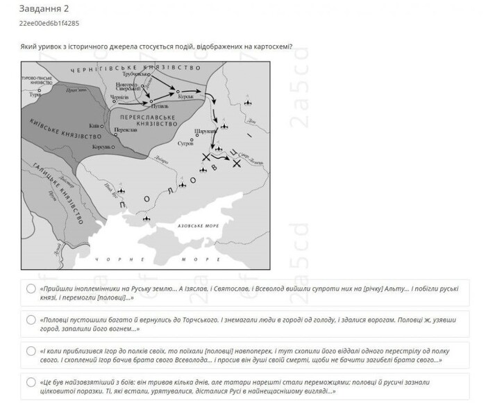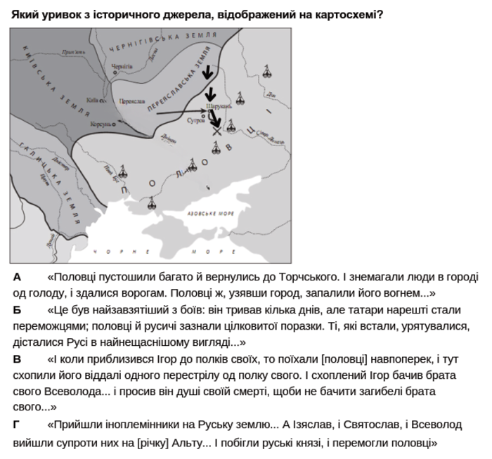 Ось приклад ще одного завдання, коли «автор-зливач» вважає його таким, що було на реальному тестуванні. Він, «творчо опрацювавши» картосхему, уважає, що вона відображає події, оспівані у «Слові о полку Ігоревім».